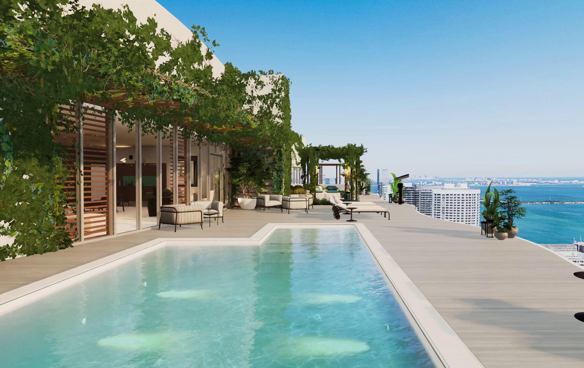 - Una impresionante piscina en la planta 12, con jardines de inspiración italiana diseñados por el mundialmente conocido arquitecto paisajista Enzo Enea- Un spa de lujo y una piscina de 20 metros con increíbles vistas a la bahía de Biscayne.- Cafetería mediterránea junto a la piscina- Cabañas privadas y zonas de descanso a la sombra- Servicio de toallas y quiosco de protección solar- Campo de yoga al aire libre- Pista de pickleball- Comedor privado con espacio para parrillas al aire libre