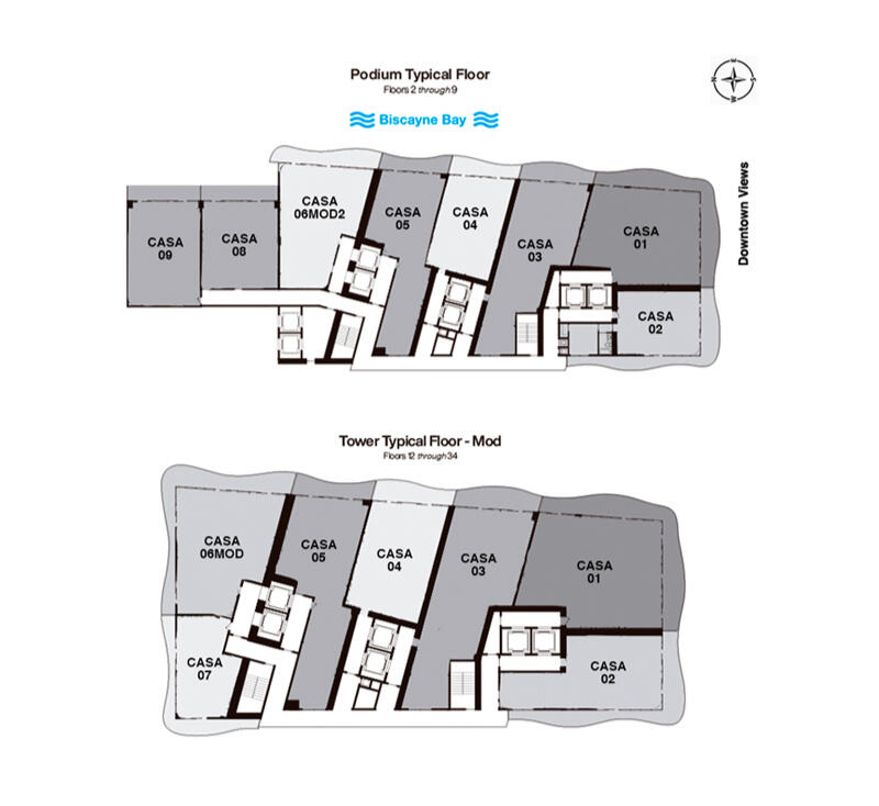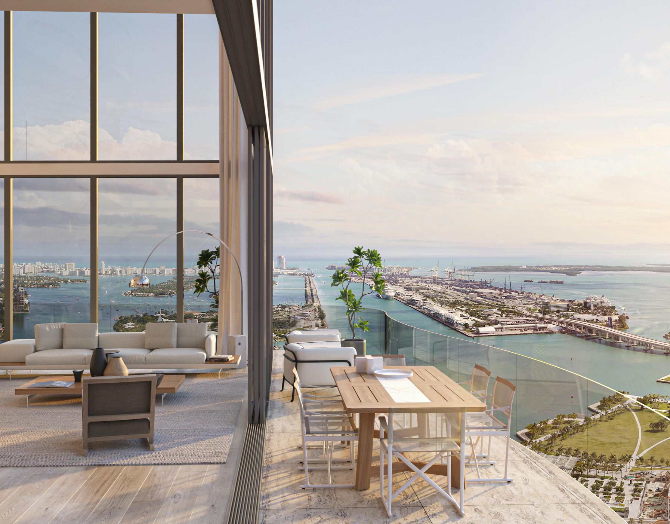 La mayoría de las unidades disfrutan de amplias distribuciones con techos altos de 3 metros y medio de altura y vistas impresionantes de la Bahía de Biscayne, el horizonte del centro de Miami e impresionantes puestas de sol. Todas las residencias cuentan con dos ascensores privados y vestíbulo.